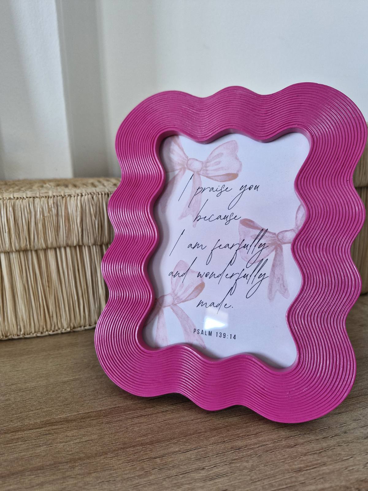 Κάδρο πήλινο με εδάφιο σε φούξια χρωματισμούς.